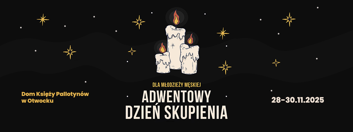 Już niebawem, pod koniec listopada, rozpoczniemy nowy rok liturgiczny i adwent. Stąd zapraszamy młodzież męską do dobrego rozpoczęcia adwentu wraz z Pallotynami! Adwentowy dzień skupienia, który odbędzie się 28-30 listopada u Pallotynów w Otwocku.